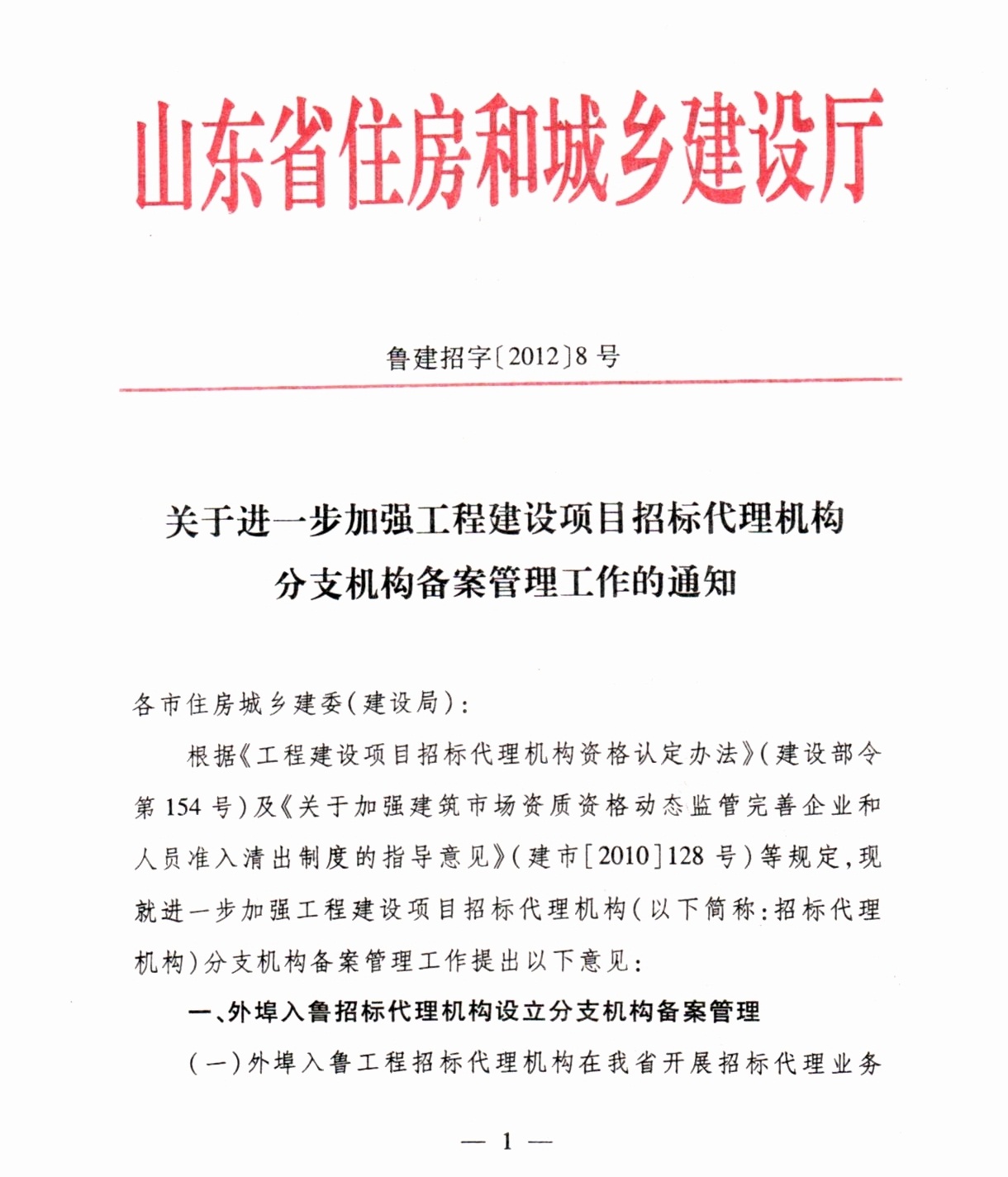 当前位置:文章正文 >> 建设厅关于进一步加强工程建设项目招标代理机构分支机构备案管理工作的通知
